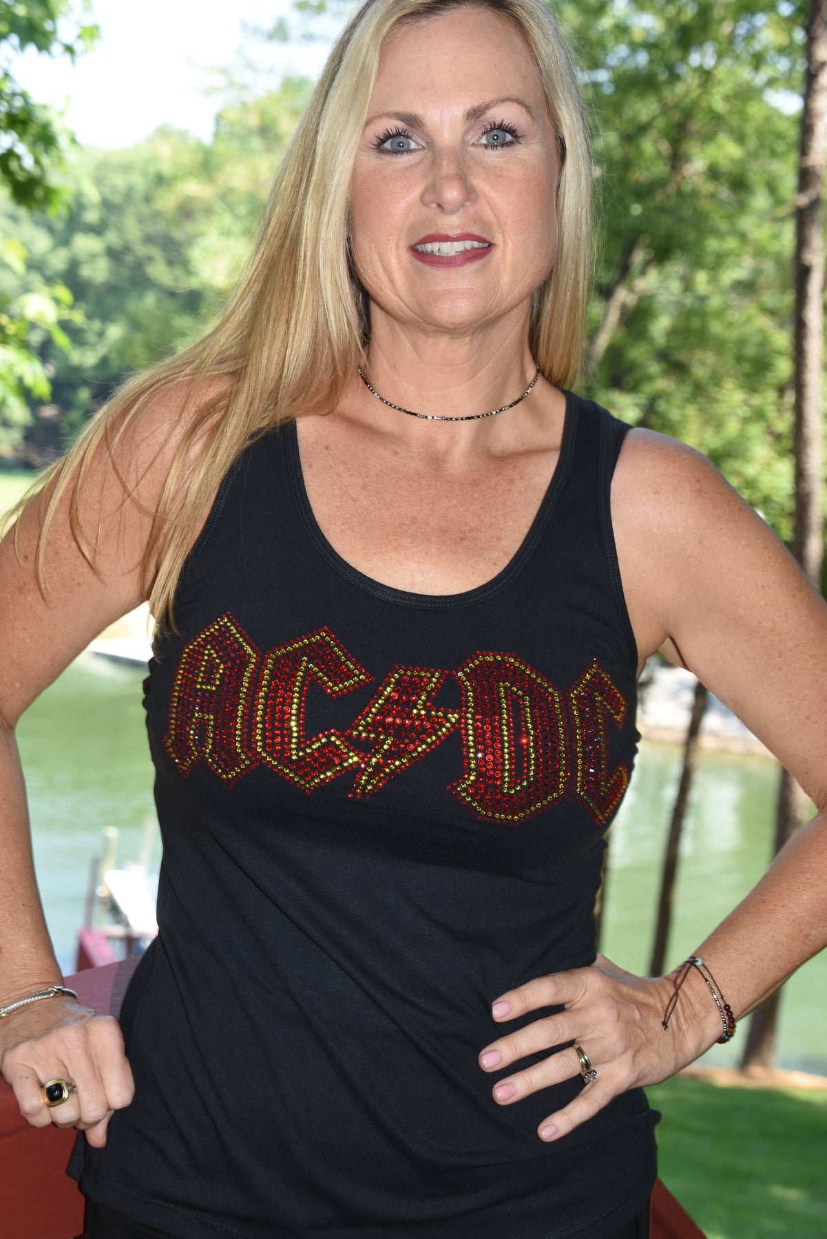 AC/DC rhinestone bling short or long sleeved shirt or sleeveless tank.