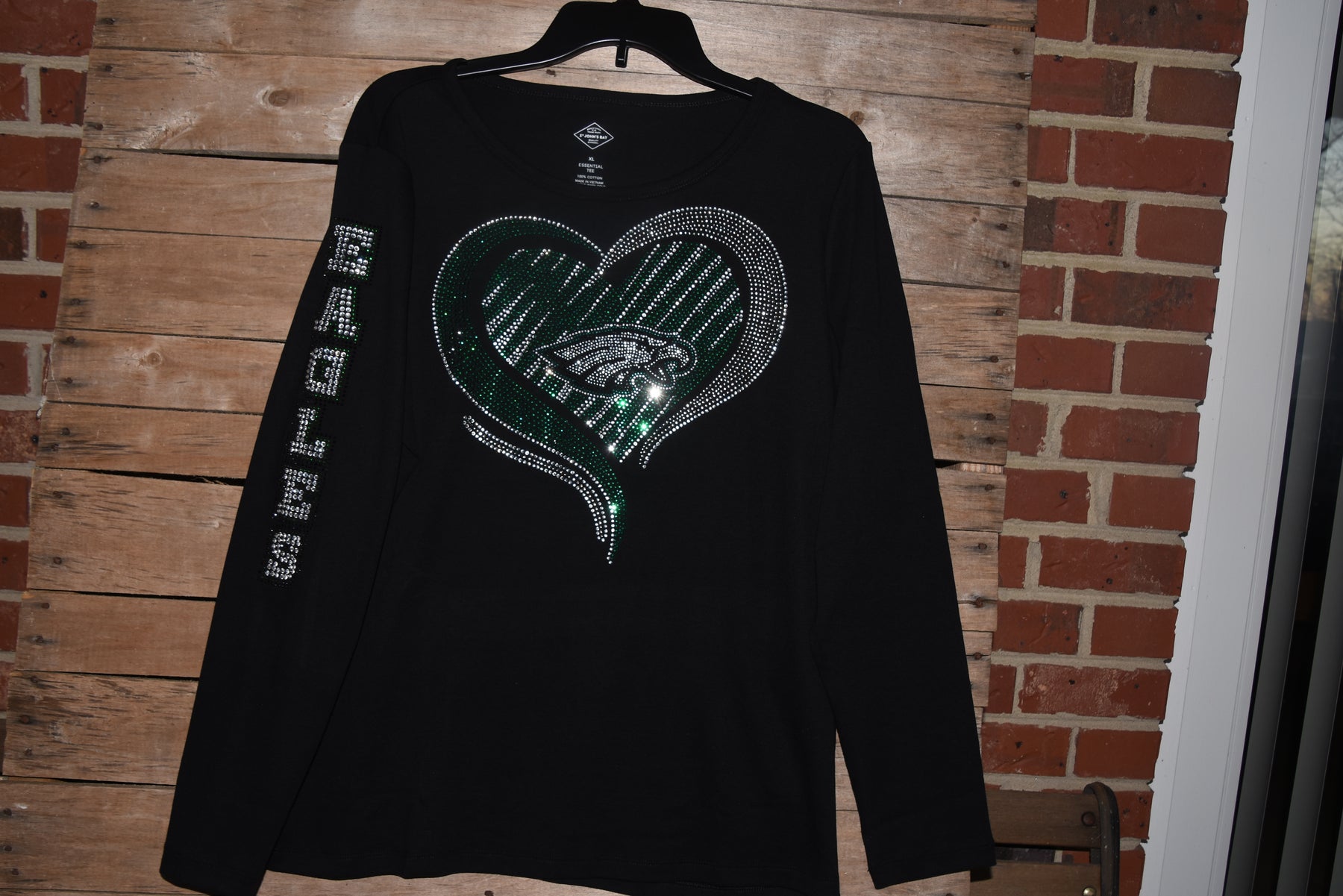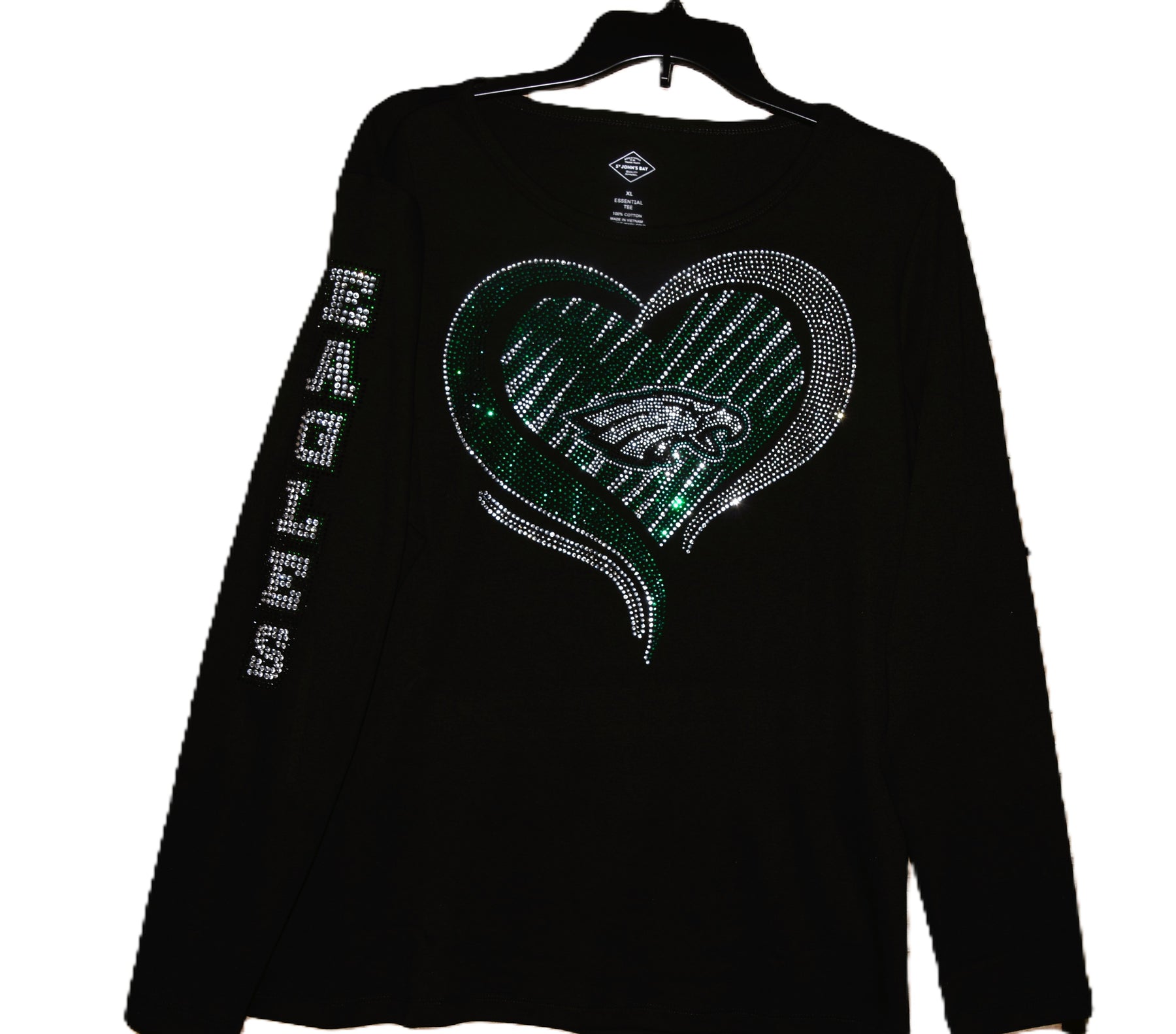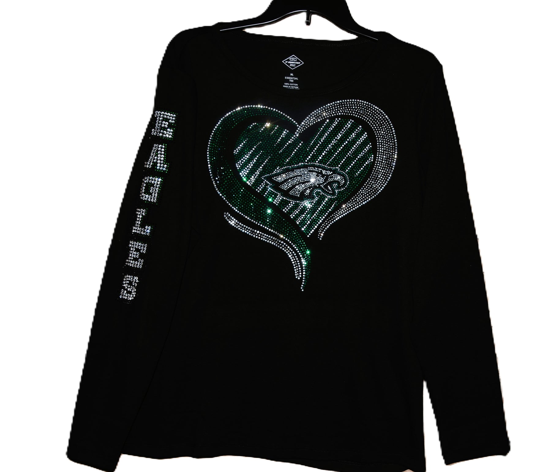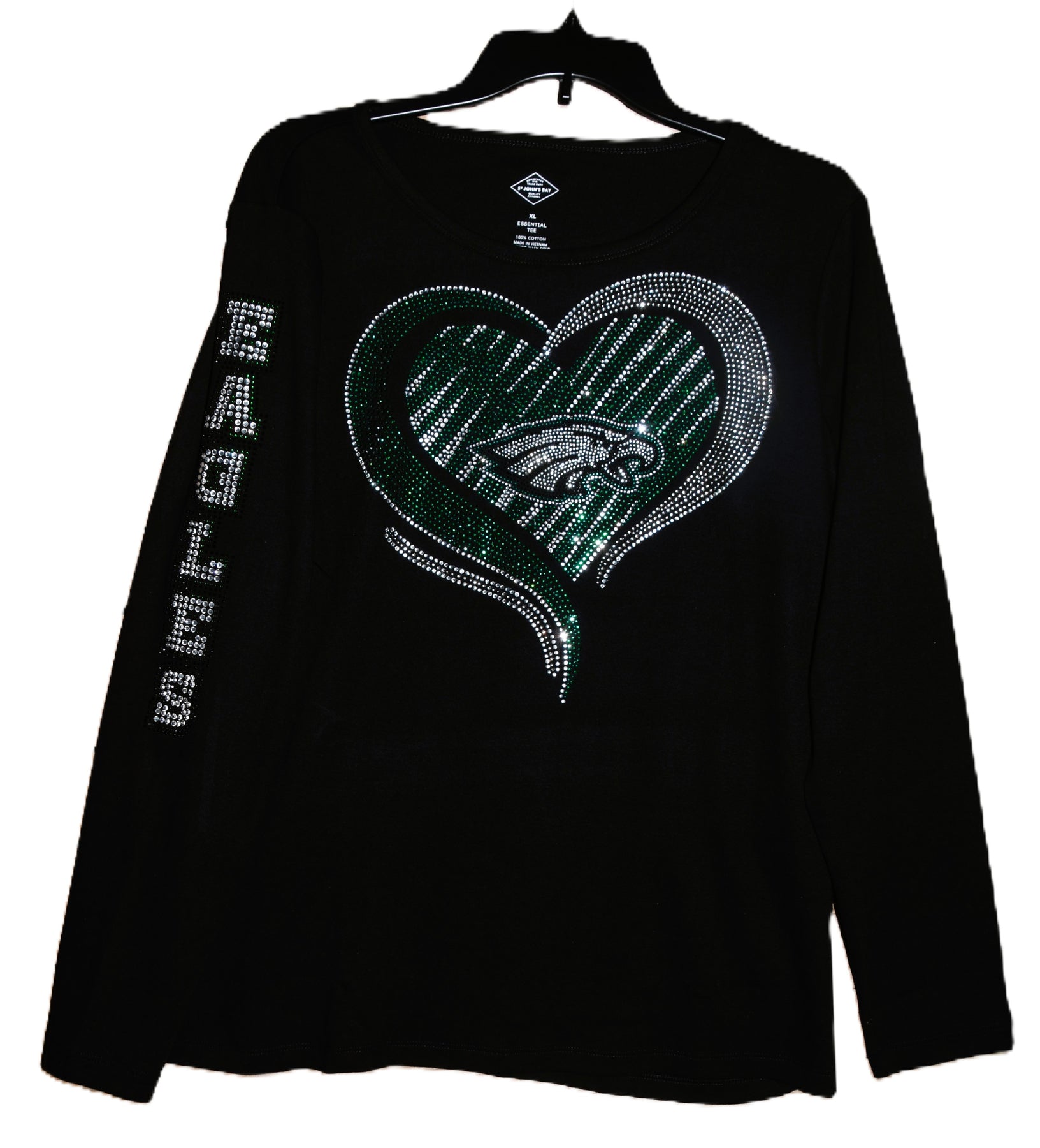 Eagles rhinestone bling long sleeved shirt with Eagles on sleeve XS S M L XL XXL 1X 2X 3X 4X 5X