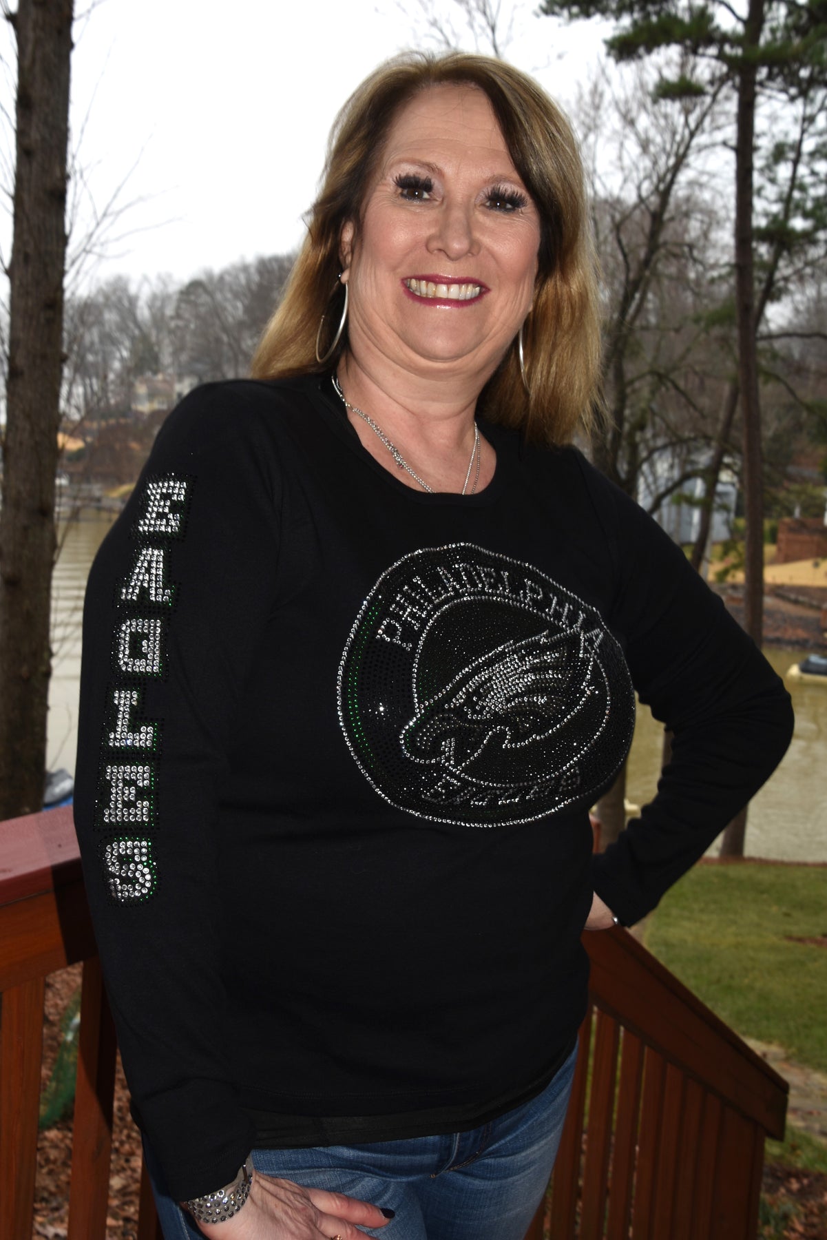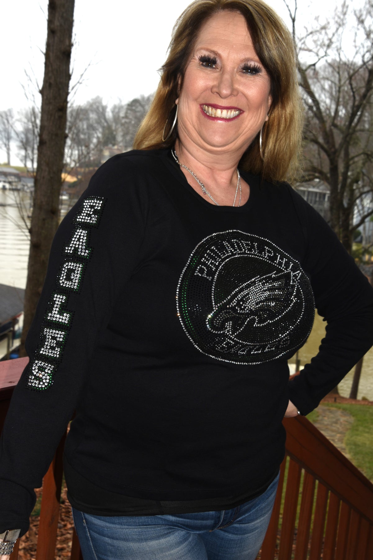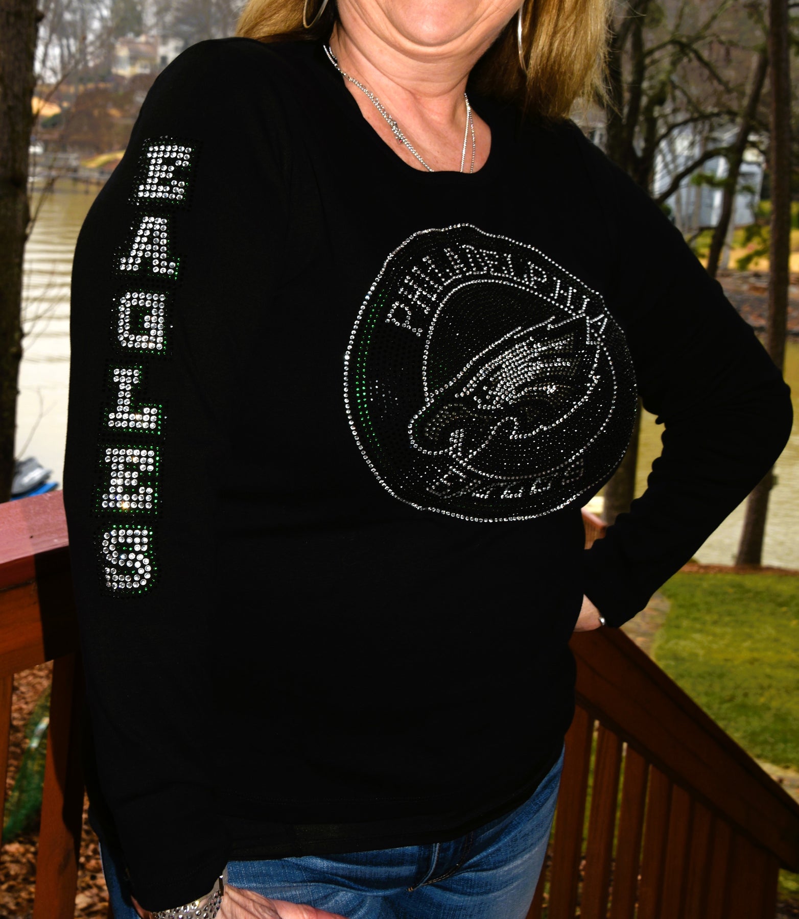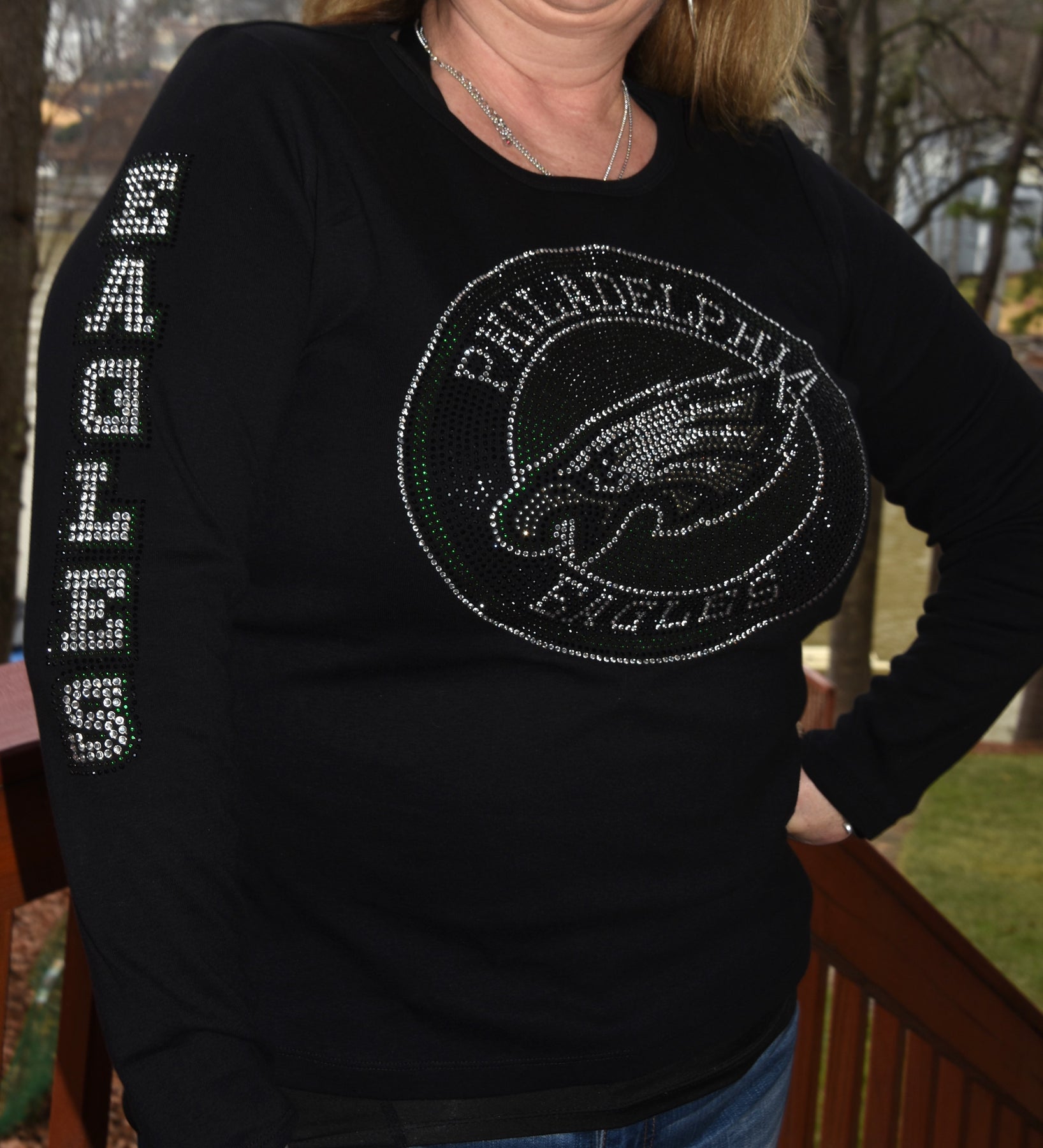 Eagles rhinestone bling long sleeved shirt with Eagles on sleeve. This is my very best Eagles rhinestone bling shirt.