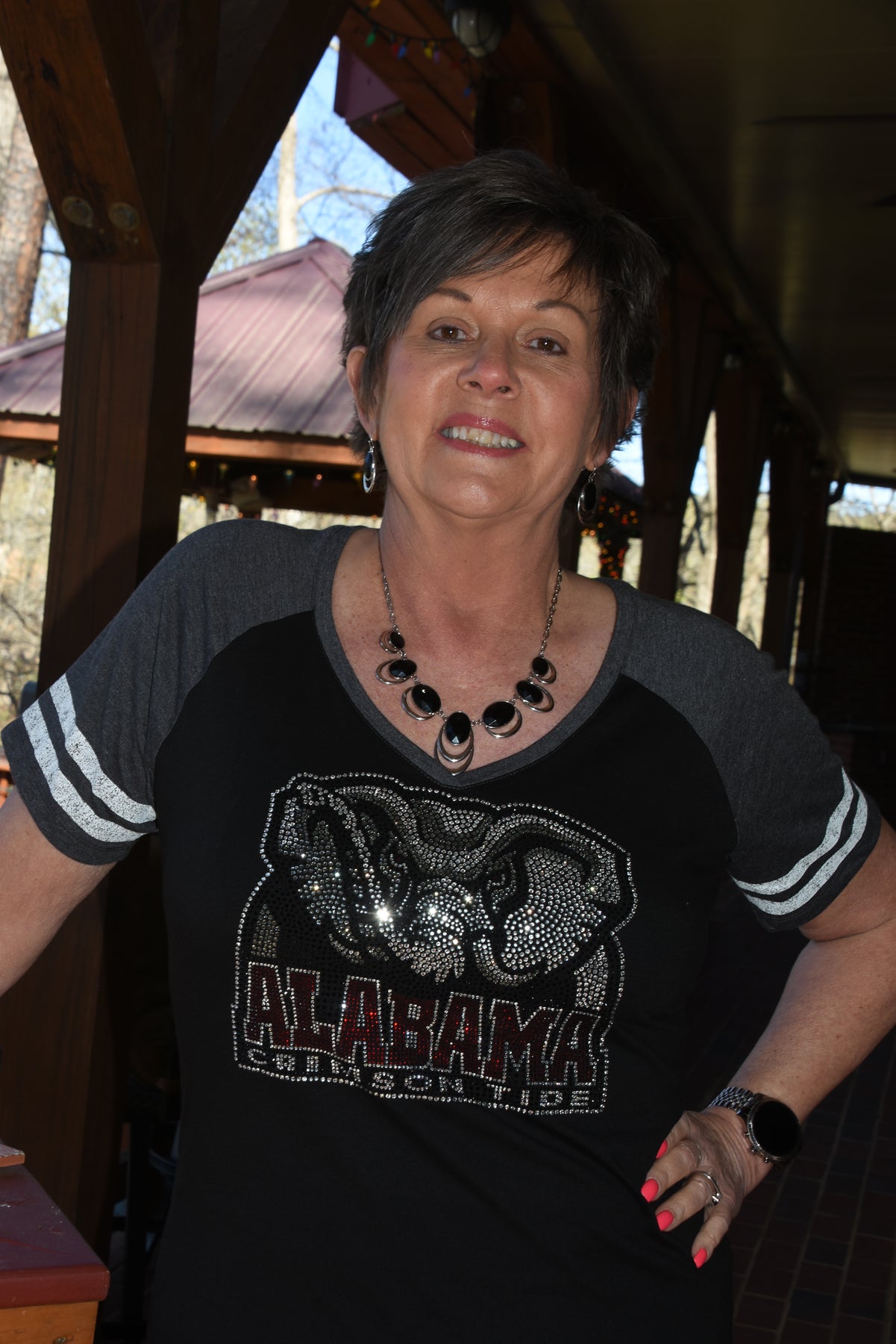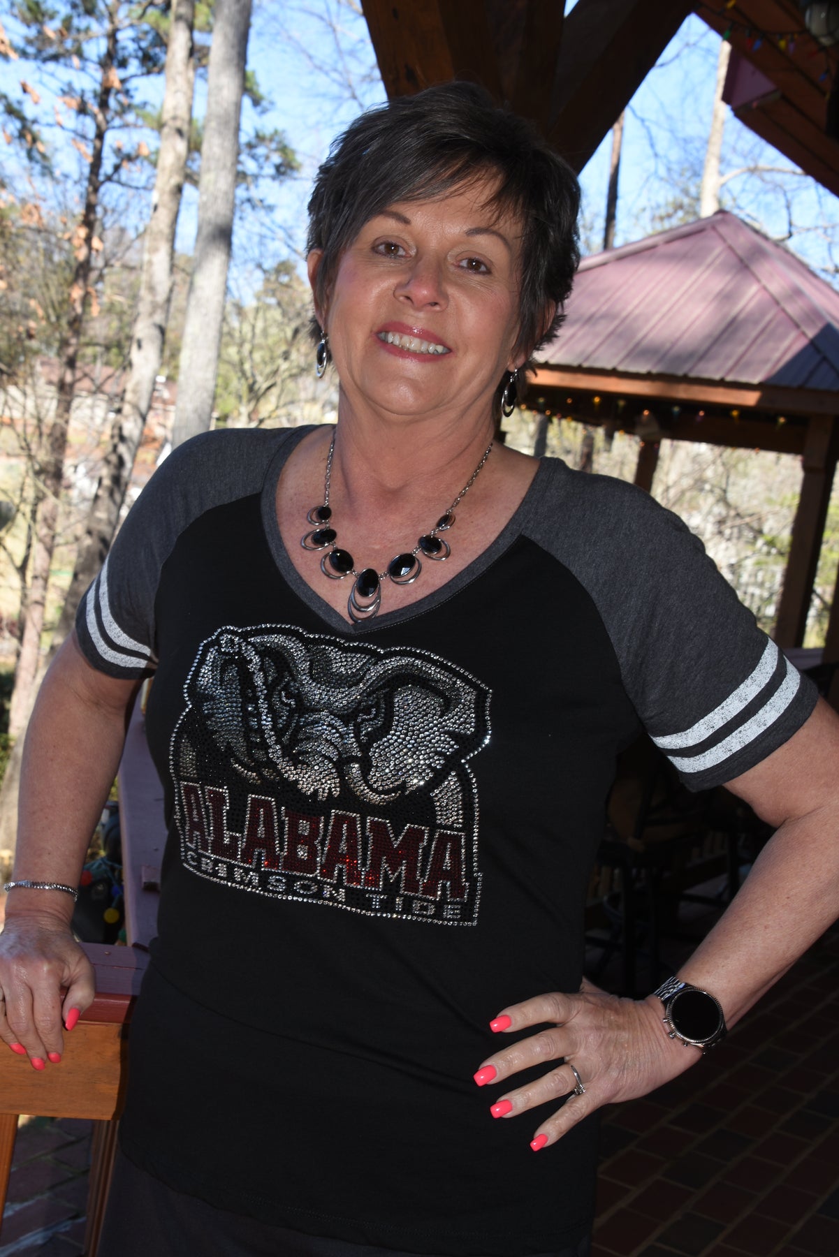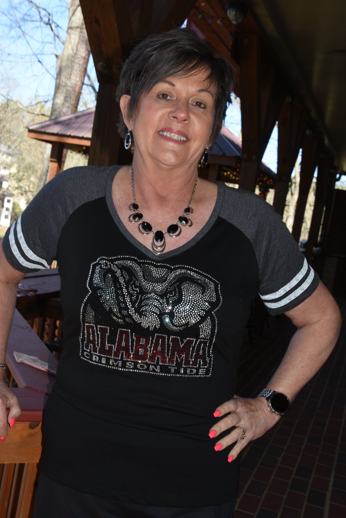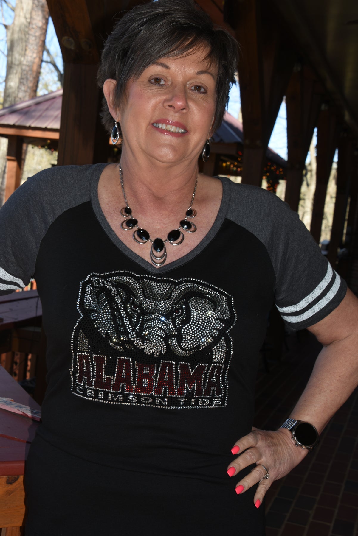 Show your love of Alabama in your first quality rhinestone bling, custom made to order rhinestone bling shirt. This is a large and ornate rhinestone design with lots of crimson red, black and diamond clear rhinestones.