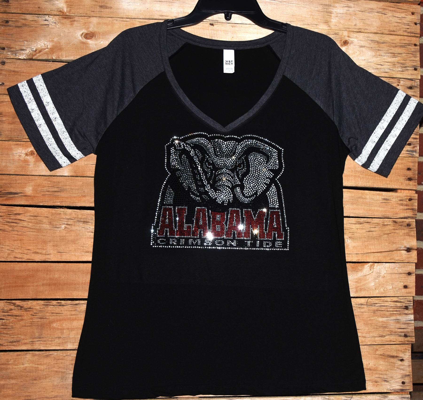 Alabama rhinestone bling athletic short sleeved Vneck baseball shirt!