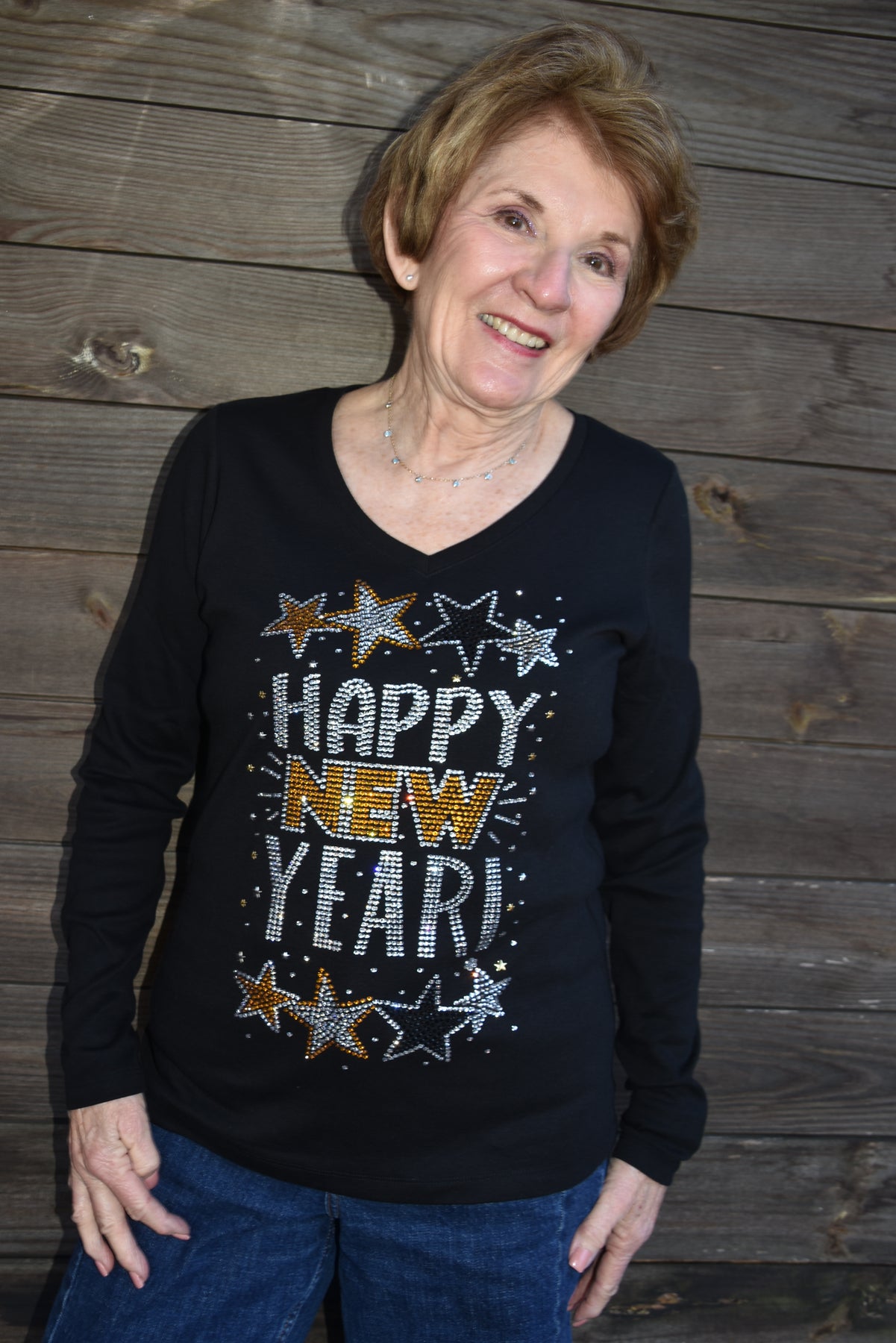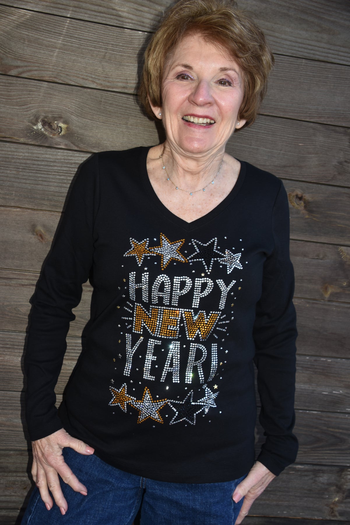 Celebrate the New Year in this first quality rhinestone custom made to order shirt.