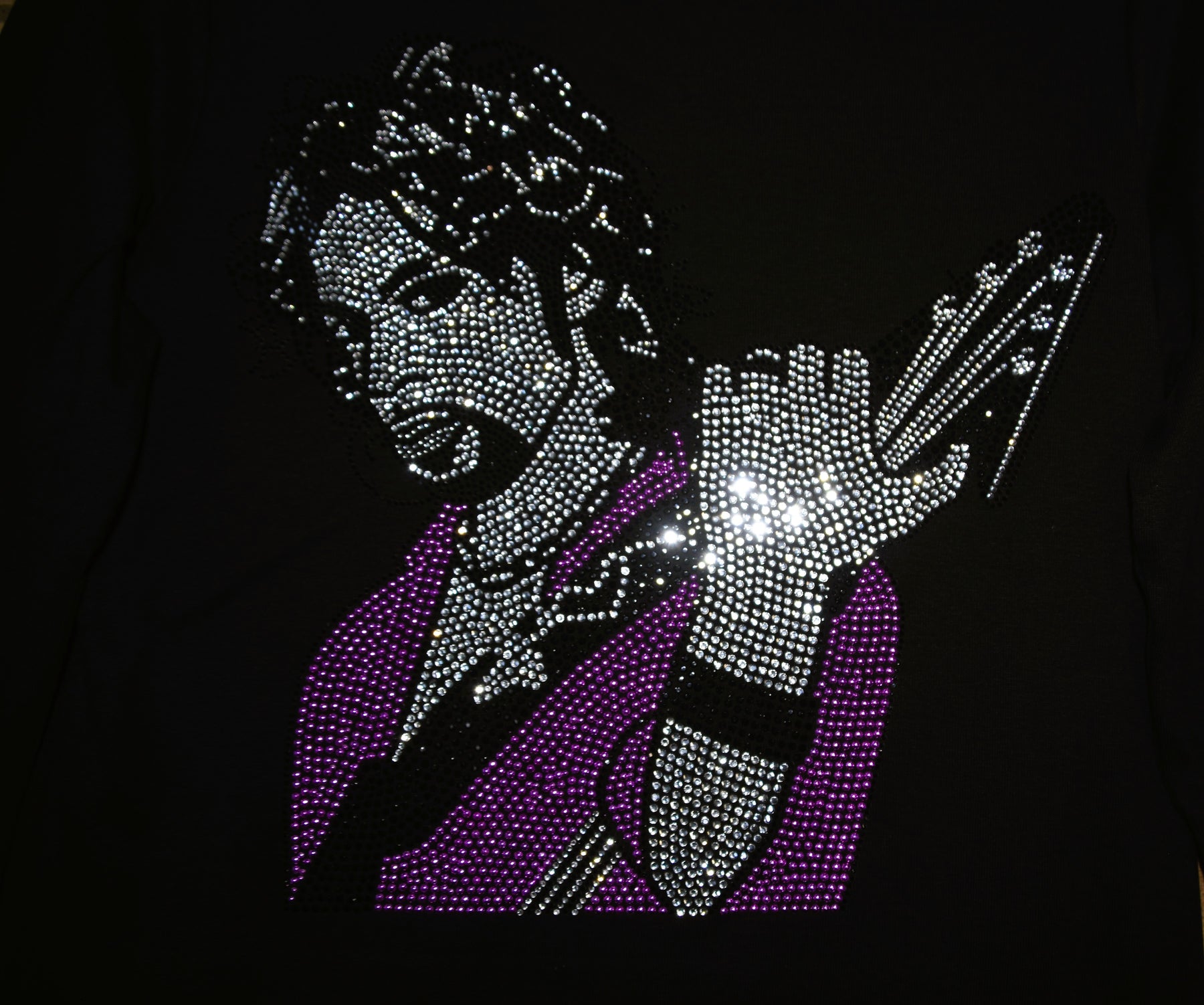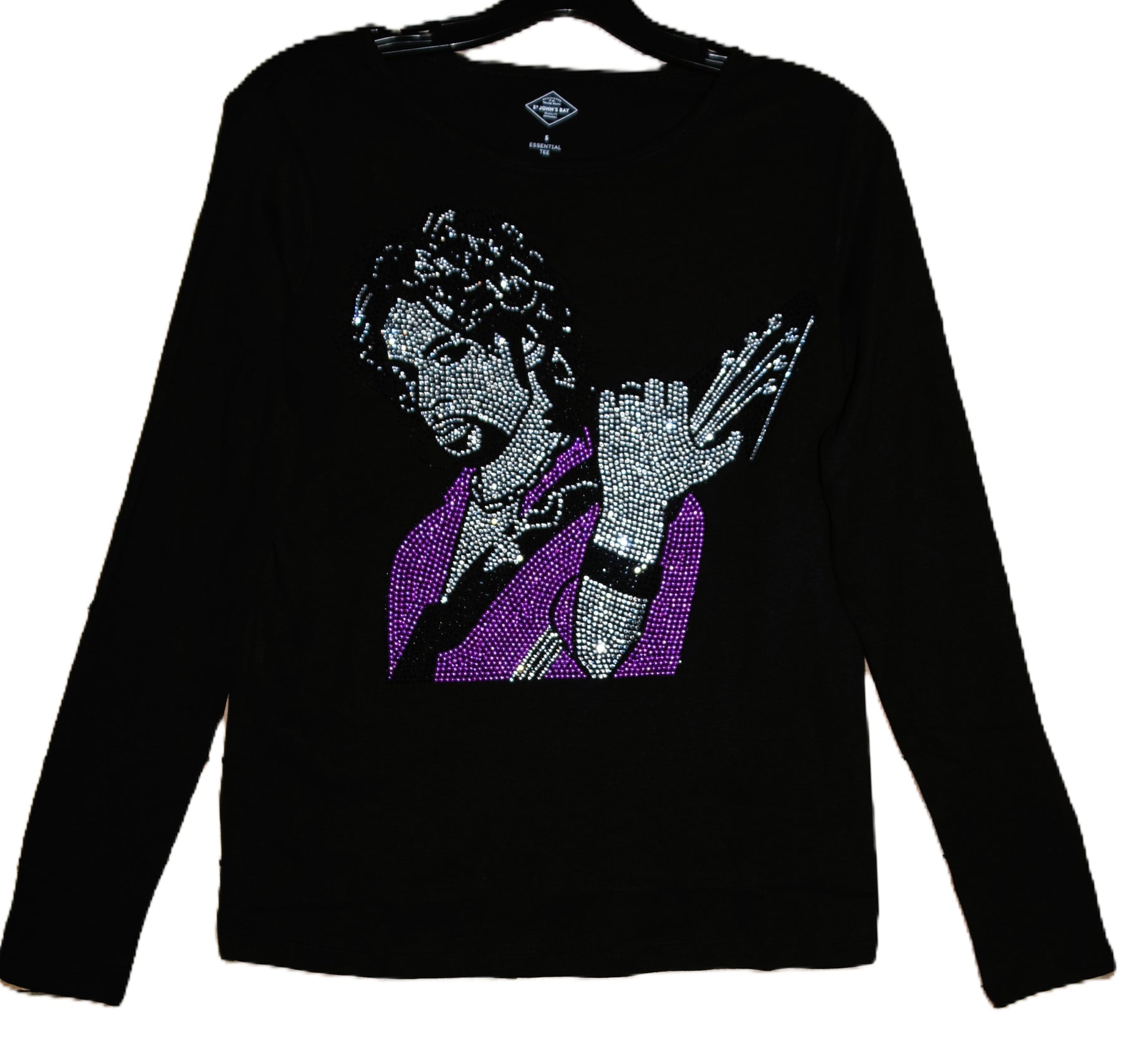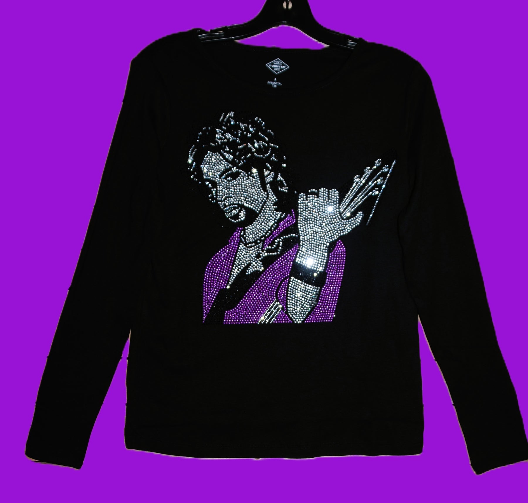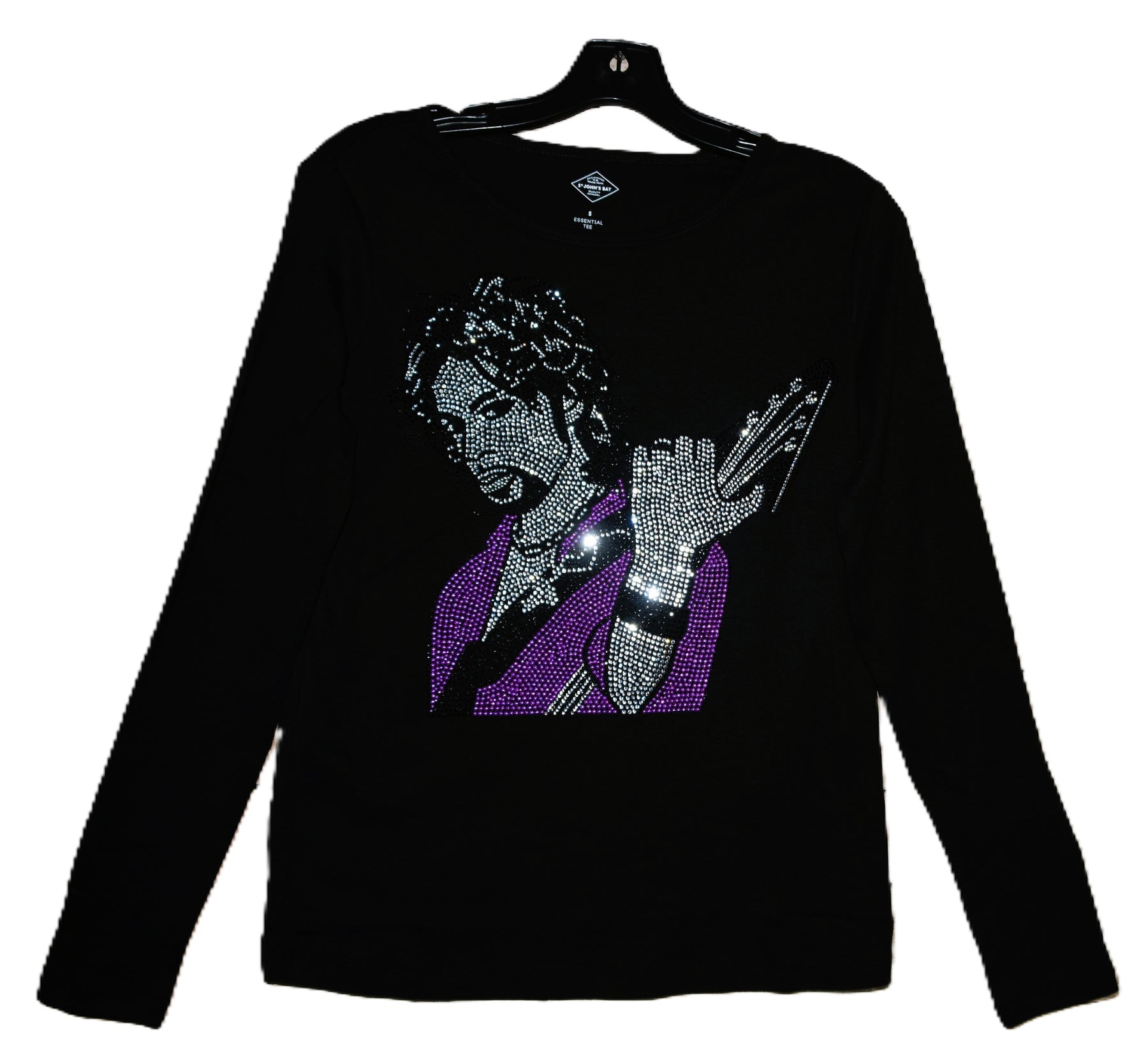 Prince Purple Rain rhinestone & nailhead bling long or short sleeved shirt or tank top.