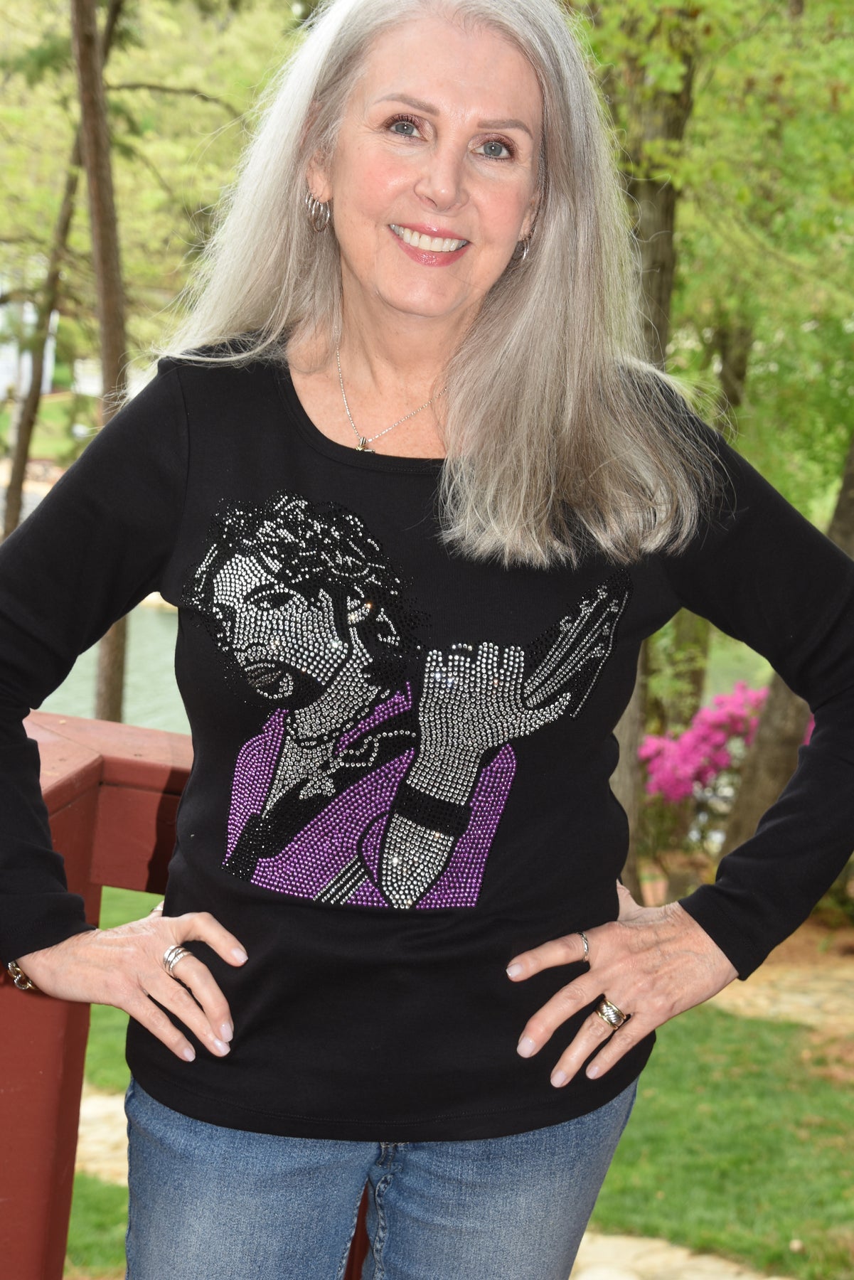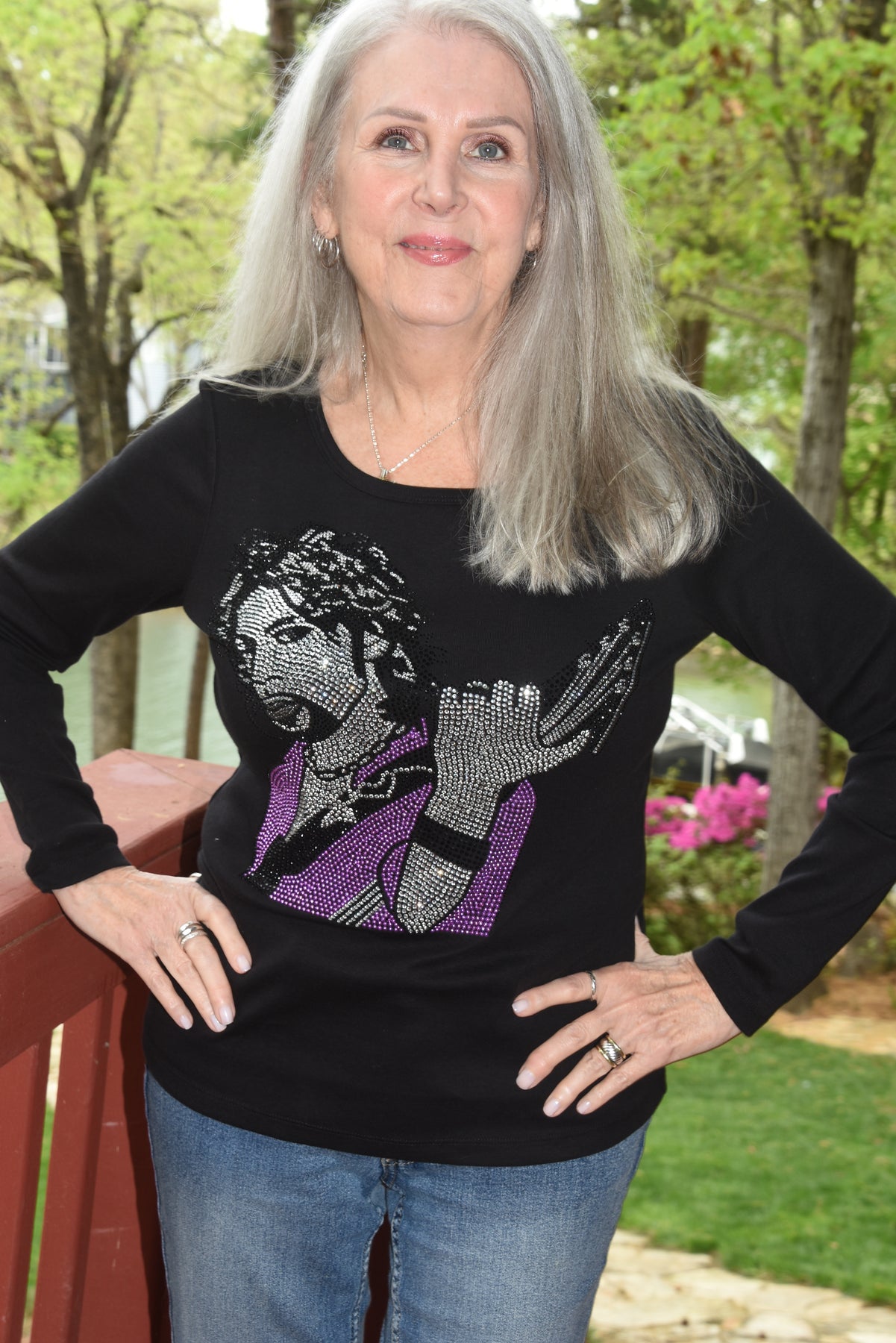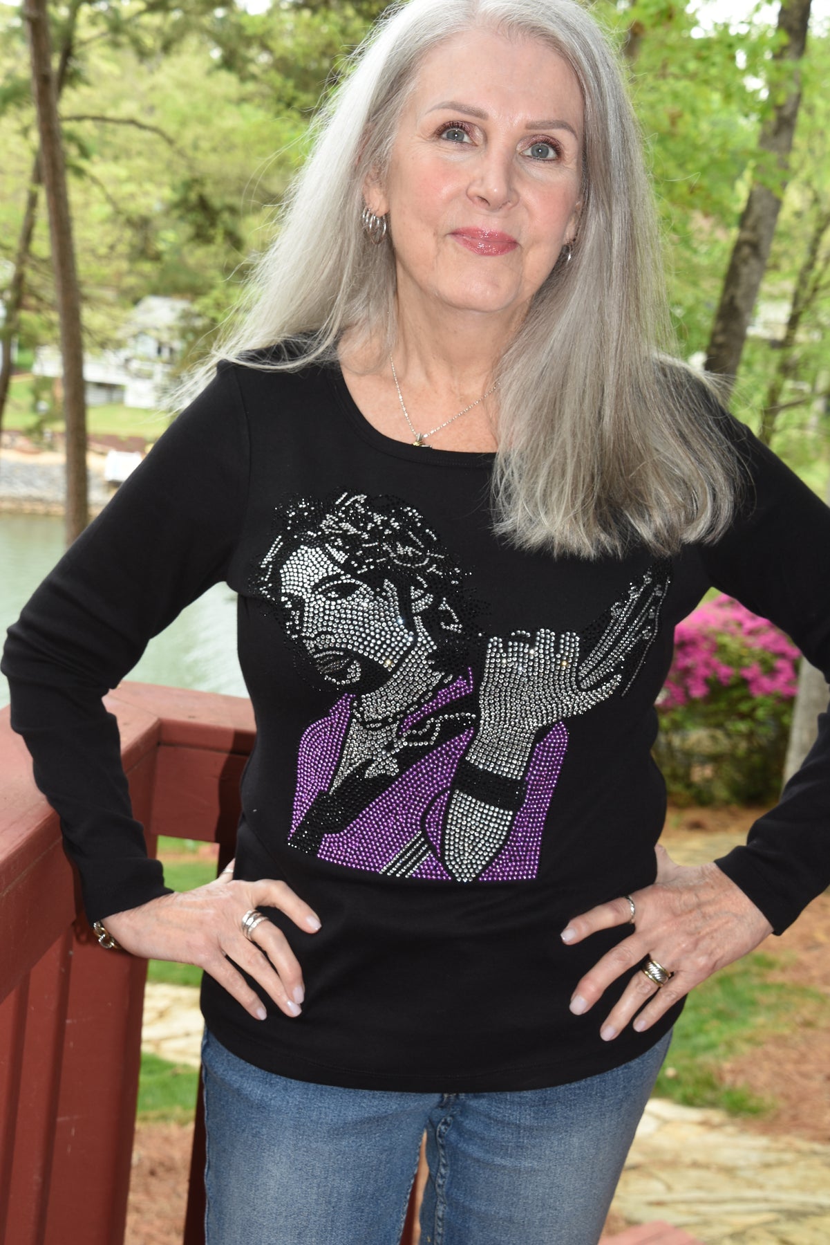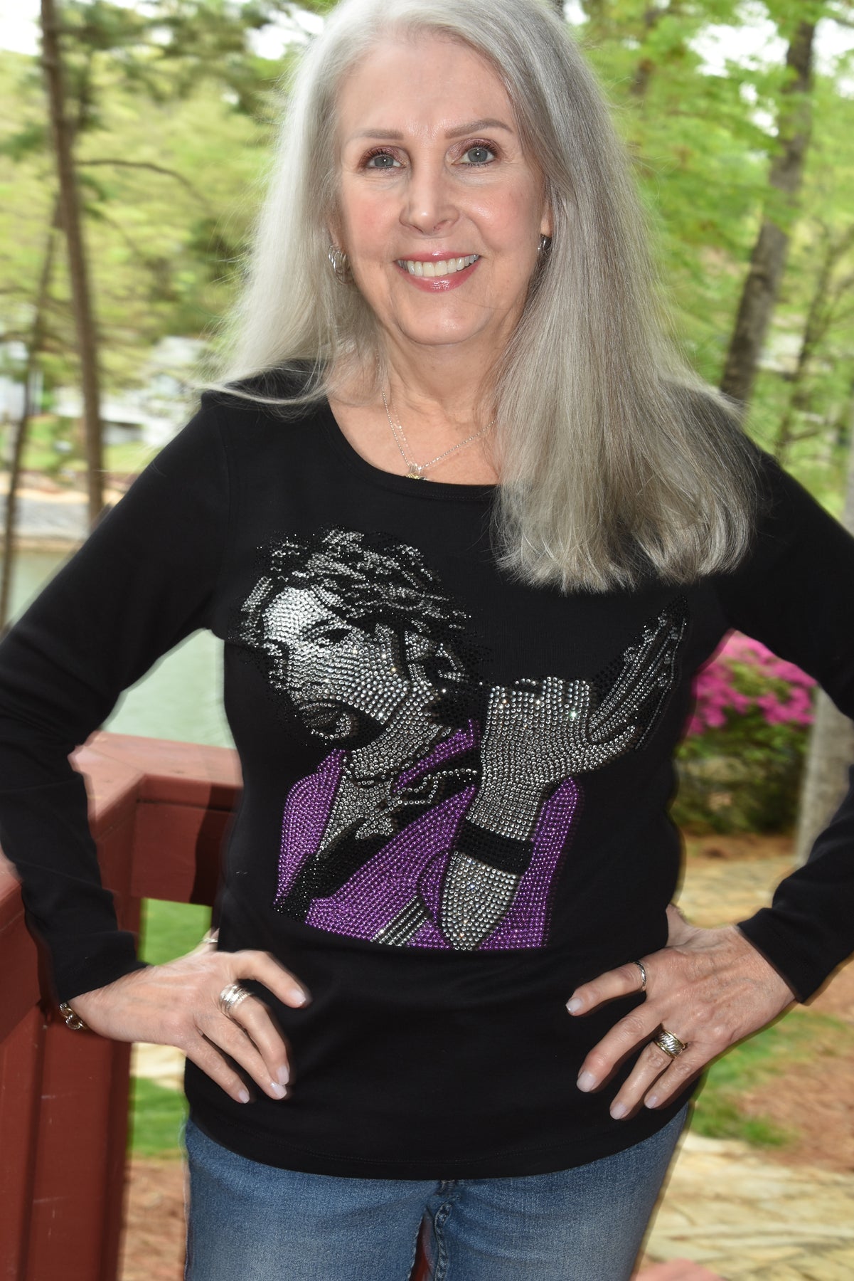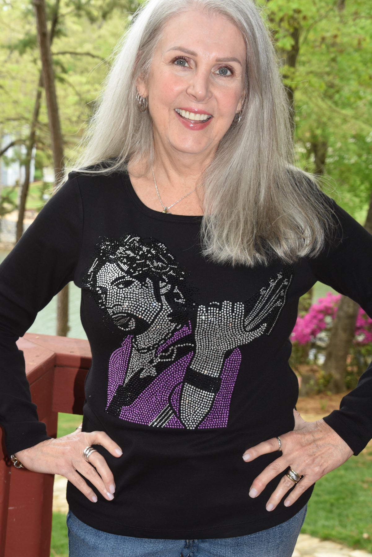 Prince Purple Rain rhinestone & nailhead bling long or short sleeved shirt or tank top.