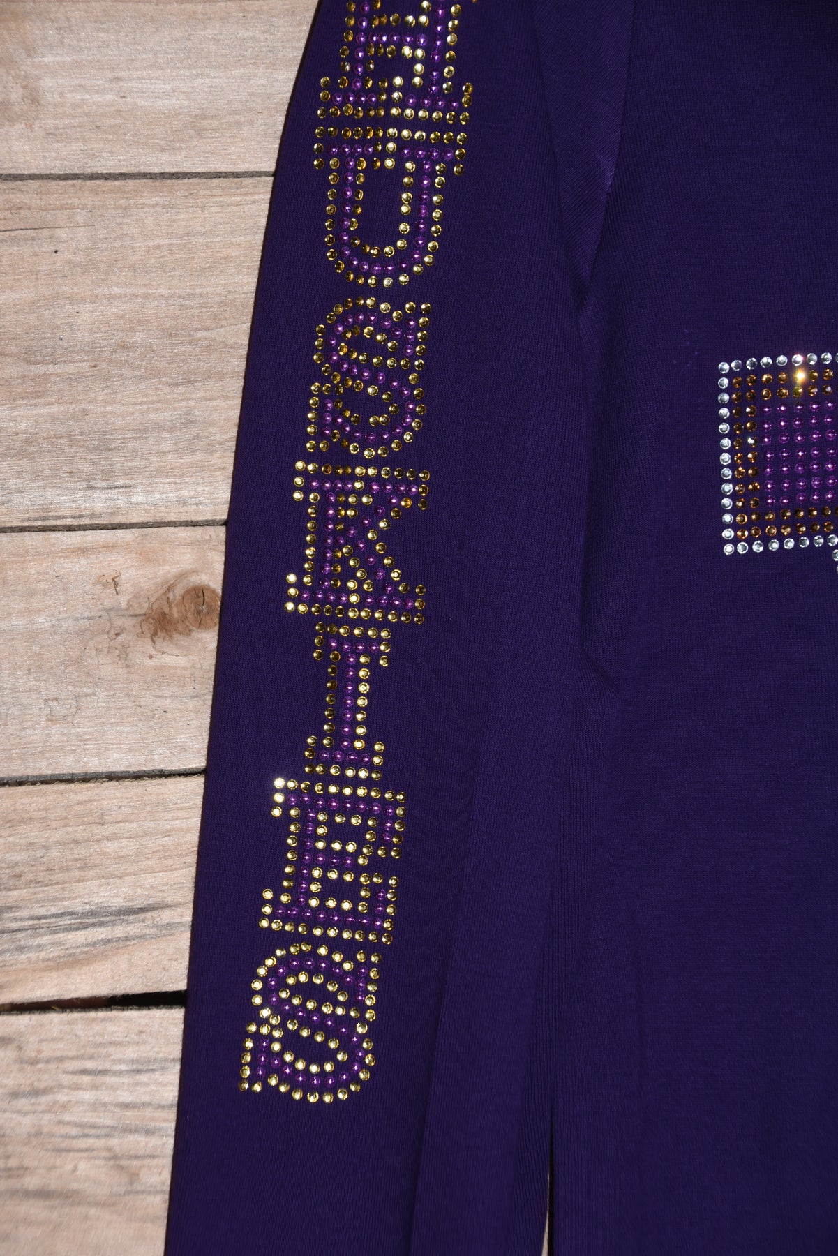 Huskies rhinestone bling long sleeved shirt with rhinestone Huskies on sleeve.