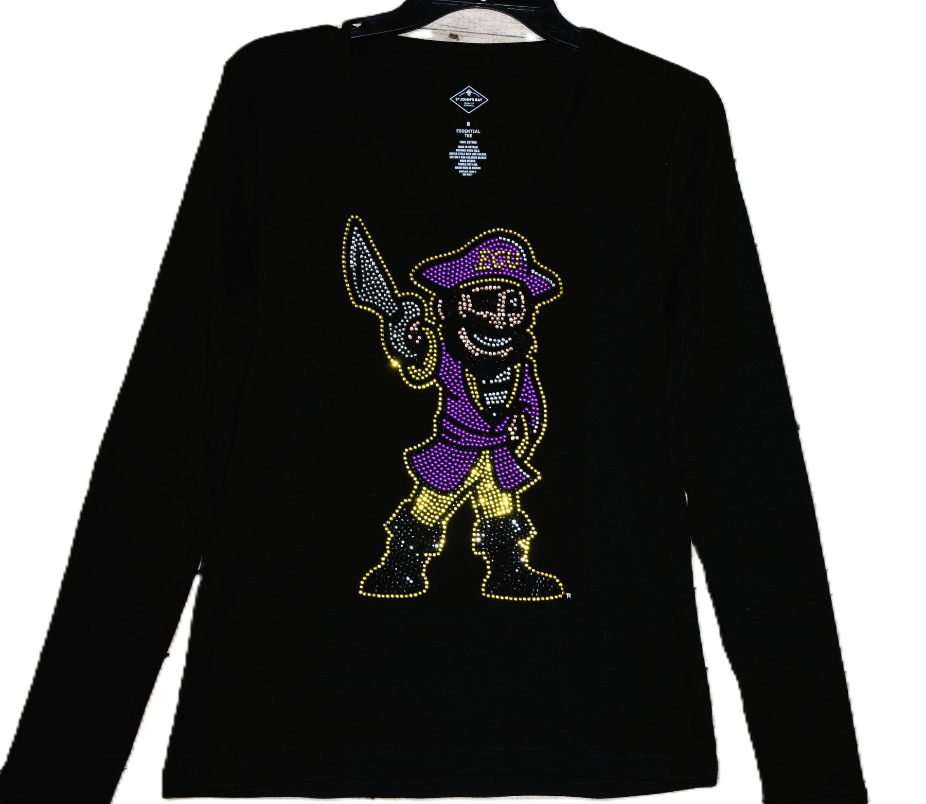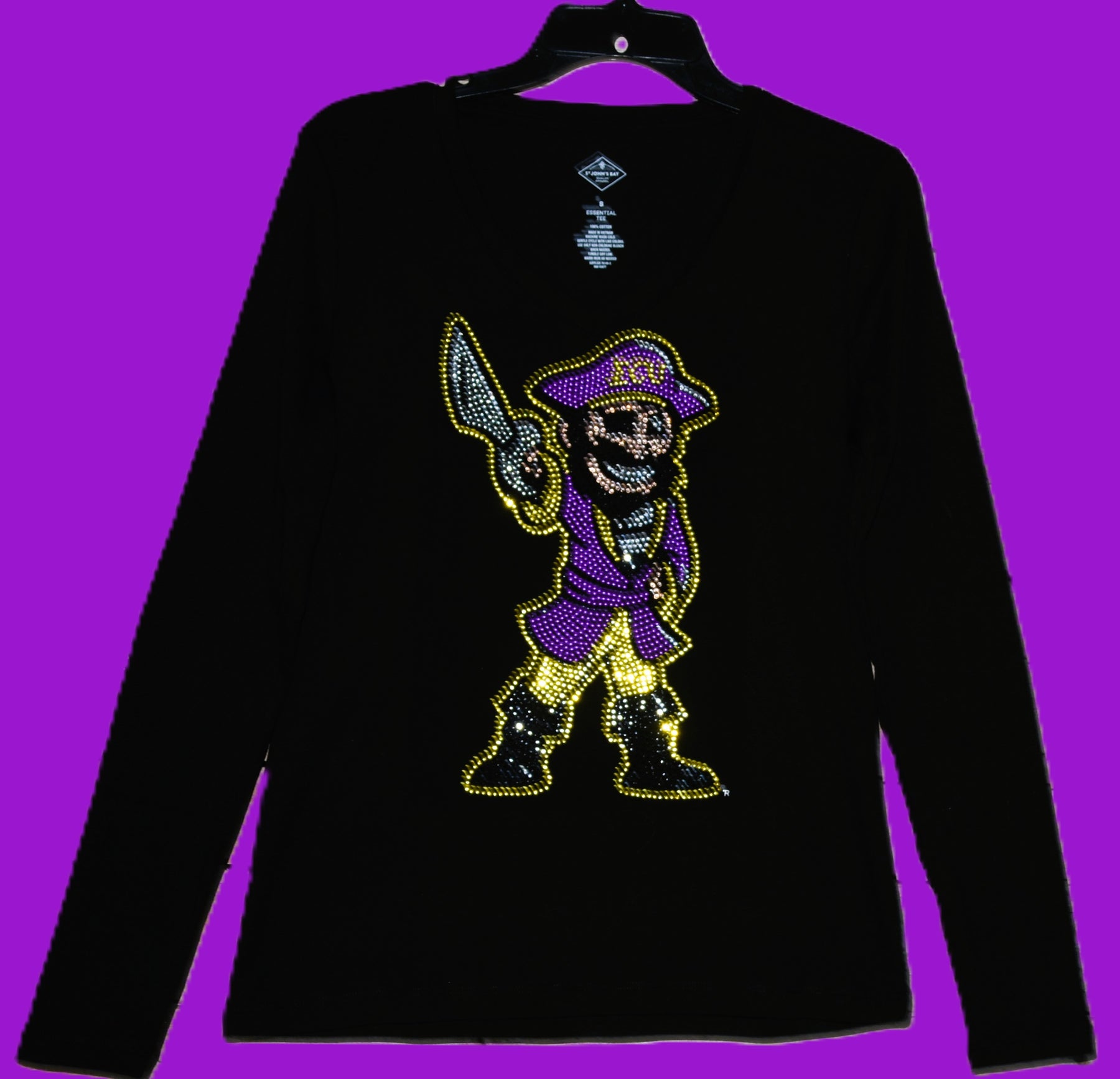 Eastern Carolina University Pirates rhinestone & nail head bling long or short sleeved purple shirt or tank top