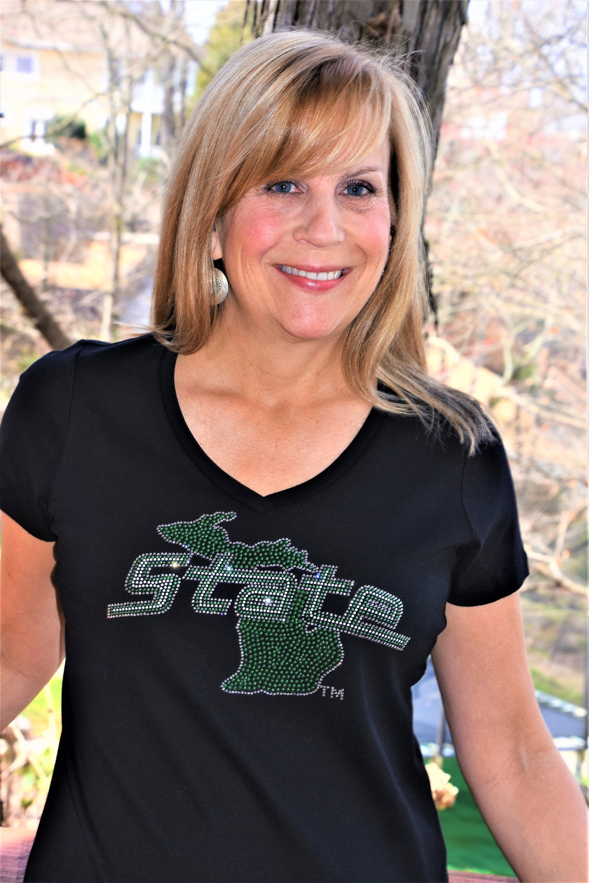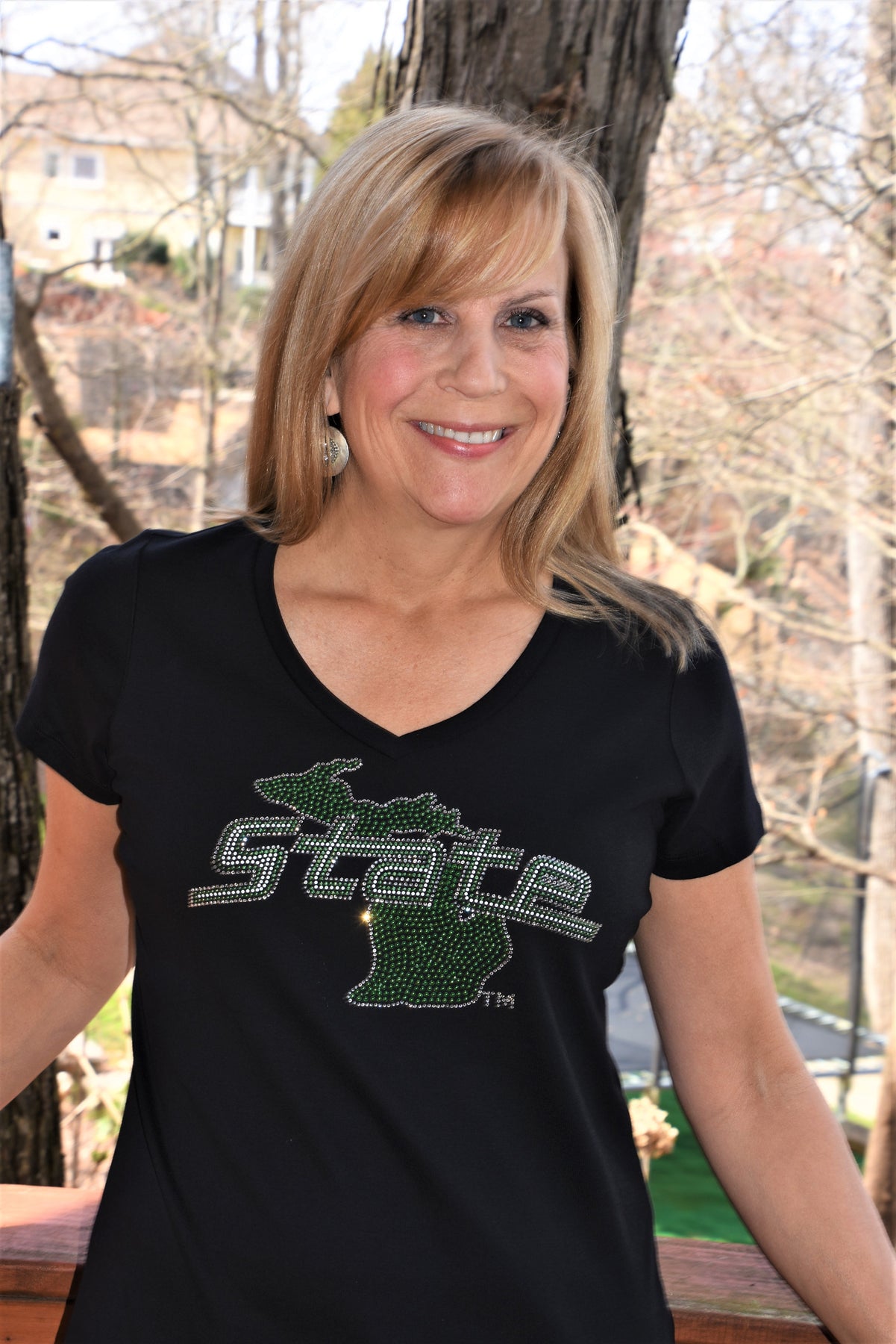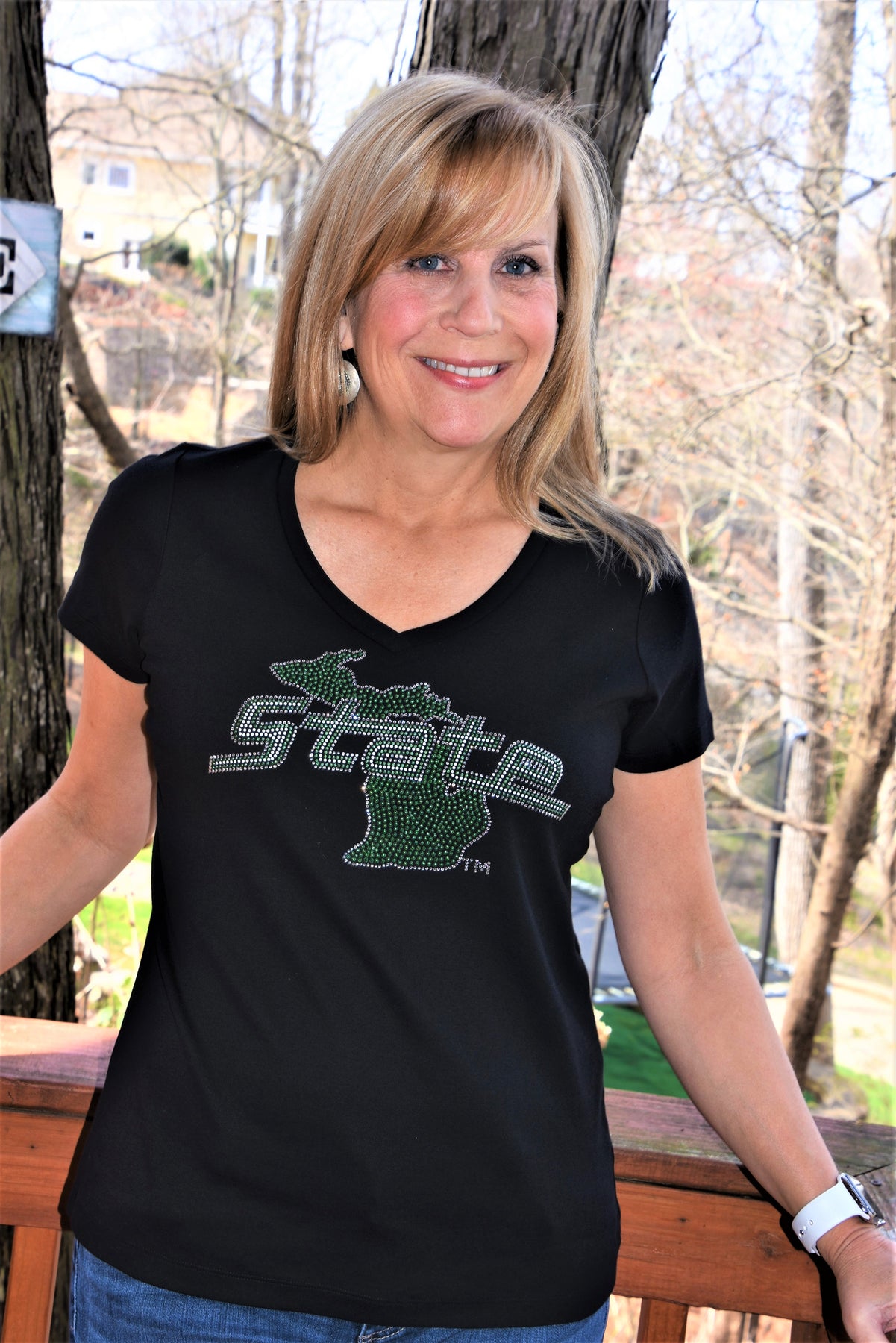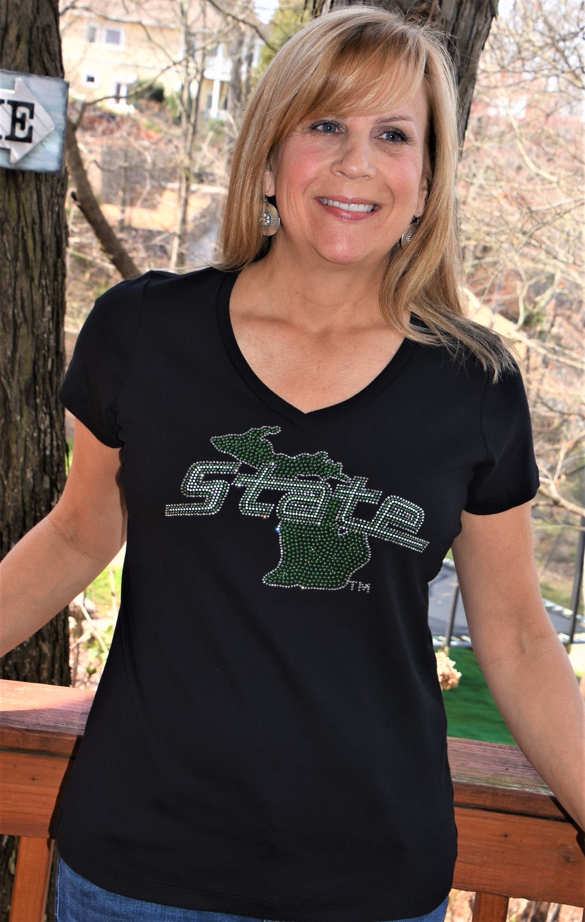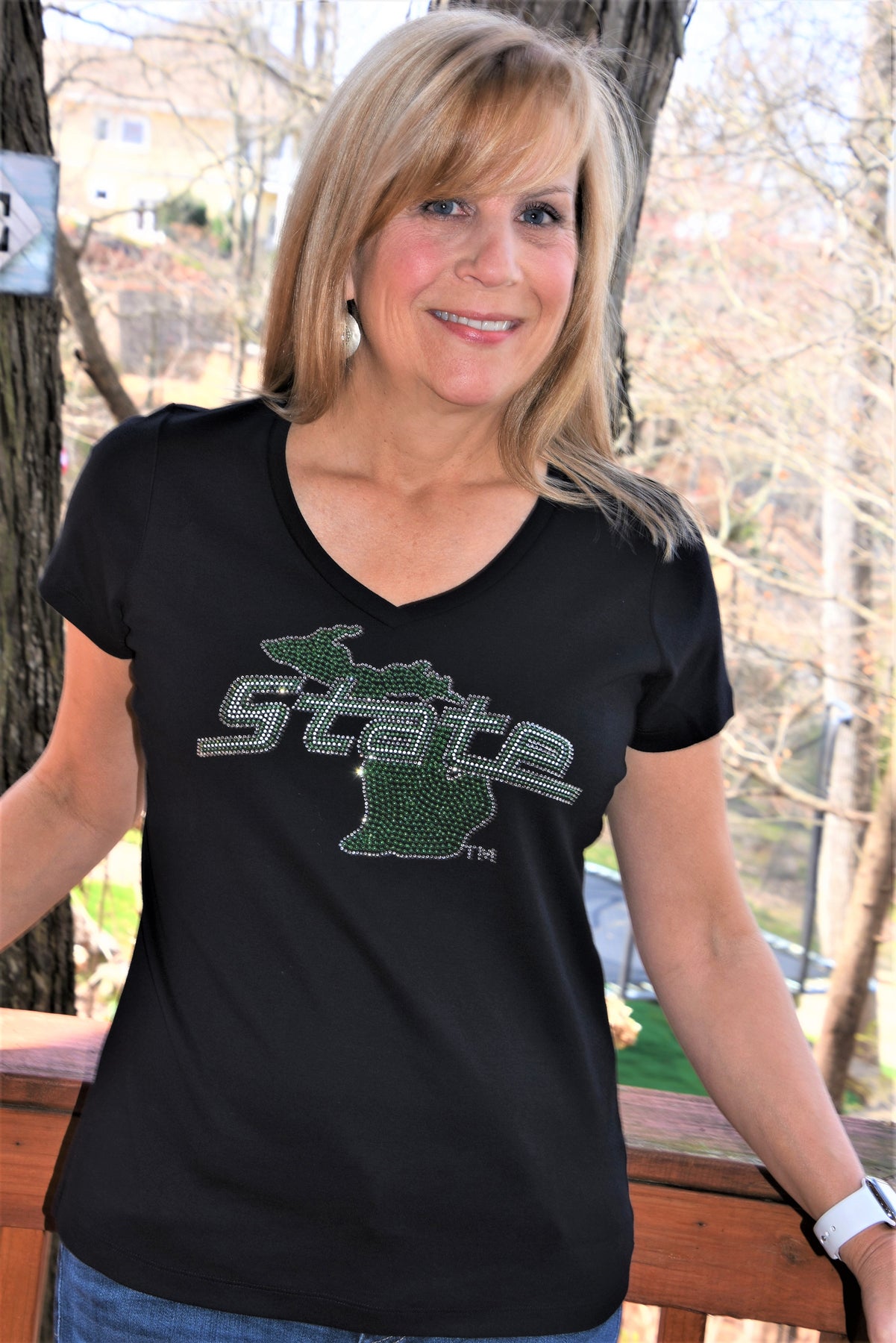 Michigan State rhinestone & nailhead bling short or long sleeved shirt or sleeveless tank.